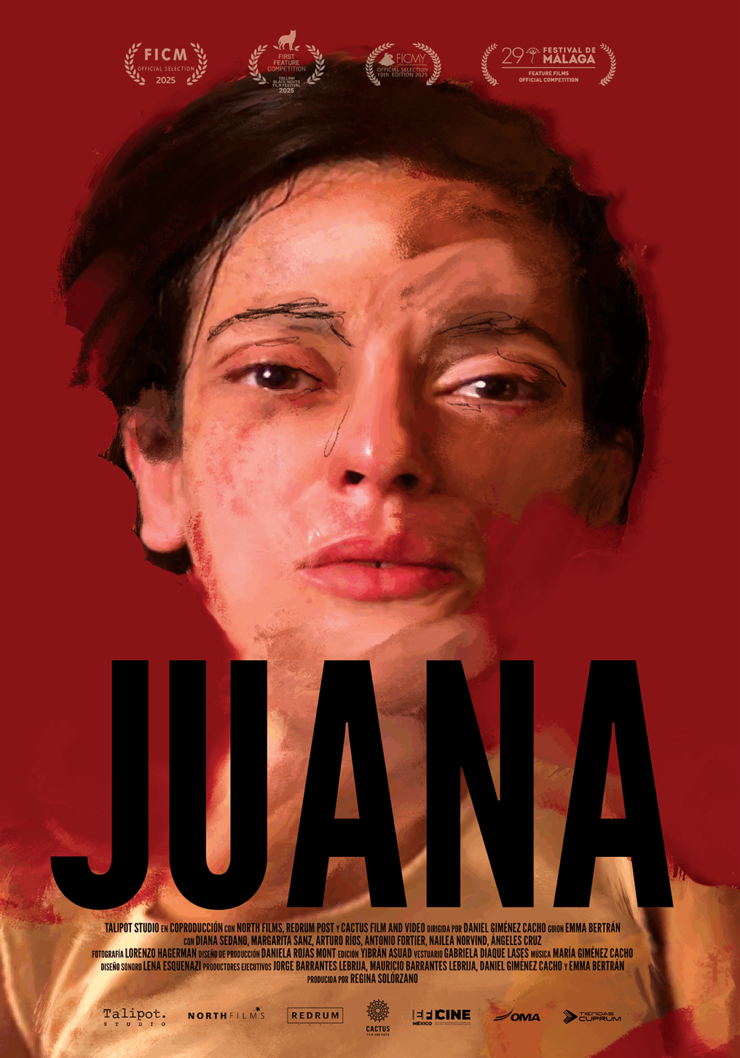 Para llevar a cabo este retrato se rodeó de grandes intérpretes partiendo por su protagonista Diana Sedano, actriz famosa en el teatro mexicano, y por un elenco que lo completan actores y actrices de la talla de Arturo Ríos, Margarita Sánz (ambos ganadores de Premios Ariel por distintas películas), Antonio Fortier, Nailea Norvind o Ángeles Cruz. A este equipo artístico se suma la experiencia de su casa productora Talipot Studio (coproductora de Los Reyes del Mundo, ganadora de la Concha de Oro o Triangle of Sadness de Ruben Ostlund con nominaciones al Oscar y ganadora de la Palma de Oro). Encabezada por Regina Solórzano, esta es la tercera producción original de Talipot Studio tras Tú eres mi problema, dirigida por Álvaro Curiel, y The Dead Don’t Hurt, dirigida y protagonizada por Viggo Mortensen. Cabe resaltar que Juana también fue coproducida con otras consolidadas productoras mexicanas: North Films (que acompañarán la película en Málaga), Redrum Post y Cactus Film & Video. Destaca además que el guión está escrito por la reconocida guionista Emma Bertrán (Un extraño enemigo, Águila Roja, Hospital central, etc).