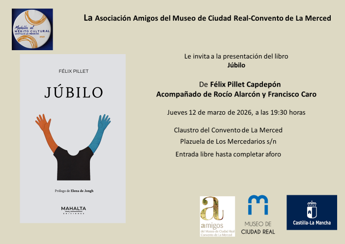 El Claustro del Convento de La Merced de Ciudad Real será el escenario el próximo jueves 12 de marzo de 2026, a las 19:30 horas, de la presentación del libro Júbilo, obra de Pillet Capdepón.