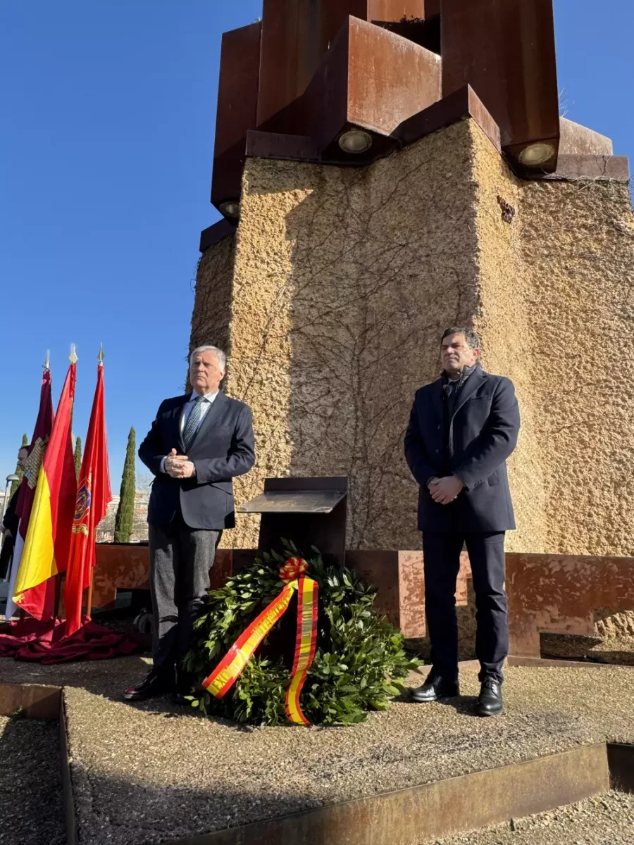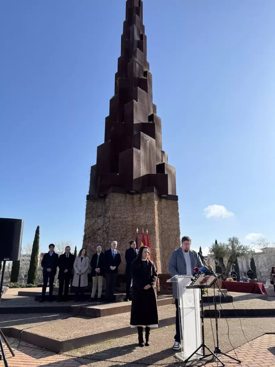 Francisco Cañizares y Miguel Ángel Valverde iniciaban el acto depositando una corona de laurel bajo la placa conmemorativa del monumento en memoria de los atentados del 11M. Después, el Pandorgo, Daniel Rodríguez, y la Dulcinea 2026, María Cieza, como representantes de los ciudadanos, han sido los encargados de dar lectura al manifiesto elaborado con motivo del Día Europeo en recuerdo de las Víctimas del Terrorismo que se conmemora cada 11 de marzo. Para finalizar, los asistentes han podido depositar una nota manuscrita con sus deseos en el “olivo de la memoria”.