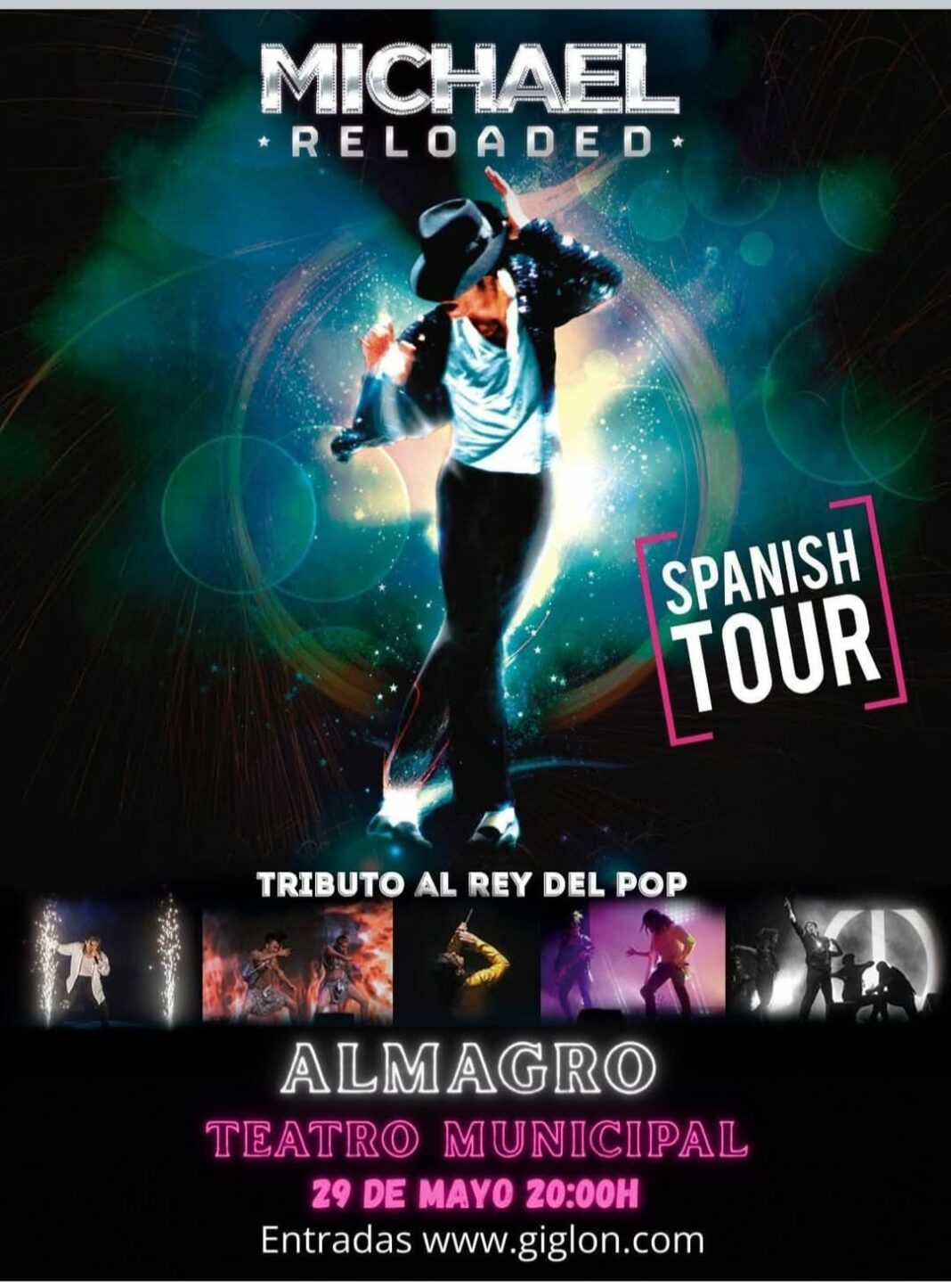 Anselmo Alañón Alcaide.- El próximo 29 de mayo, en el Teatro Municipal de Almagro, la Compañía de baile «Michael Reloaded» ofrecerá un tributo al rey del pop, Michael Jackson, dentro de su gira «Spanish Tour». El espectáculo recrea las impresionantes coreografías del legado de Michael, con el que disfrutaron sus fans en la década de los ochenta. Un show dirigido a todos los públicos con el que «Michael Reloaded» está triunfando en todo el territorio nacional, llegando al aforo completo.