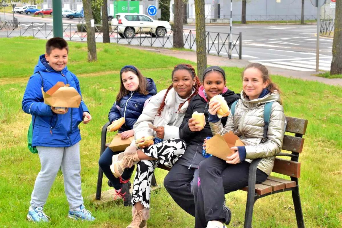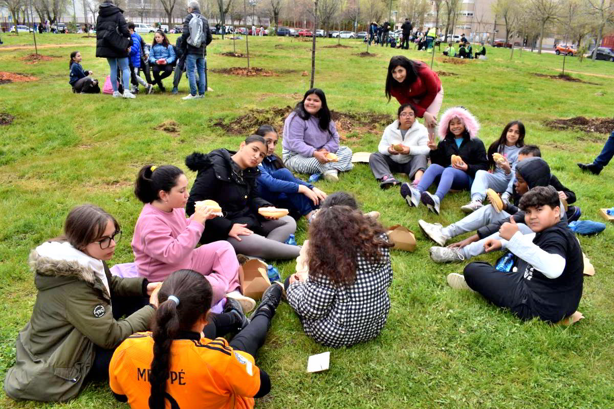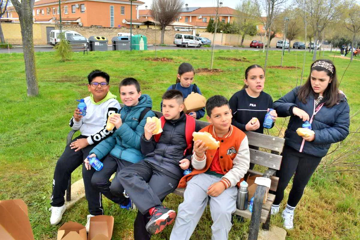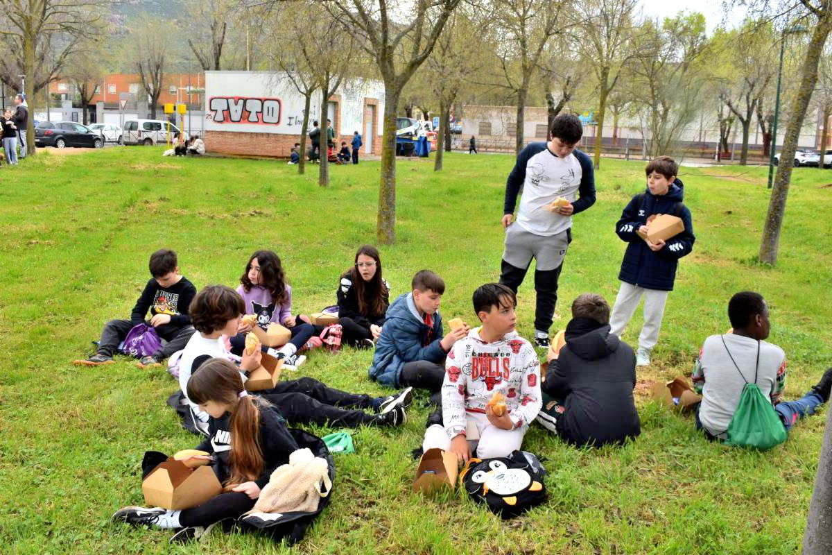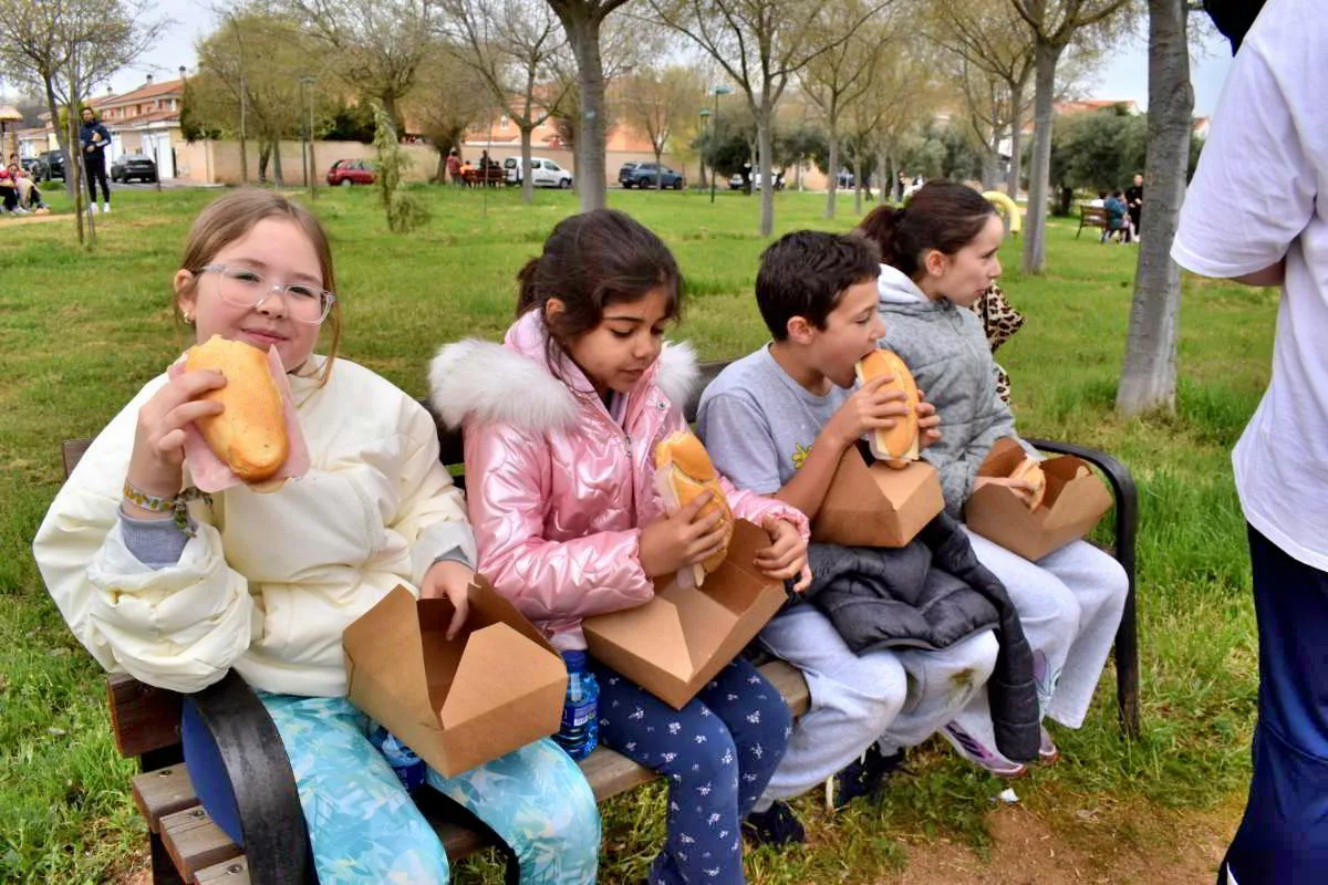 Un día de encuentro y de celebración para los escolares alrededor de los árboles, cuyo esfuerzo ha sido recompensado con un bocata con el que reponer fuerzas en un nublado día de campo con el que han dado la bienvenida a la primavera.
