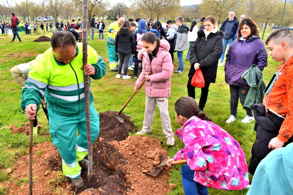Más de cuatrocientos escolares y medio centenar de docentes han participado en la plantación promovida por el Ayuntamiento de Puertollano para embellecer diversos espacios verdes de la ciudad.