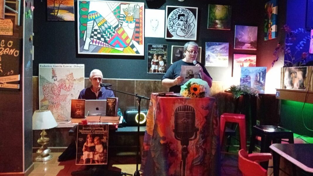 Marciano Sánchez Cabanillas.– Otro encuentro literario feliz, en Macondo. Como siempre, Fran maestro de ceremonias y Sole y Virgilio de anfitriones amables y diligentes. Esta vez el encuentro es con mi querido amigo, sonsecano, Manuel Camuñas.
