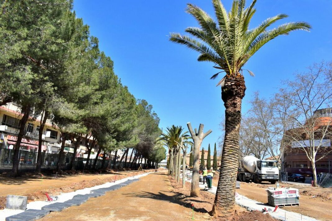 También se ha iniciado la colocación de las baldosas fotocatalíticas que separarán los parterres del pavimento de hormigón, una solución innovadora que contribuirá a mejorar la calidad ambiental del entorno.