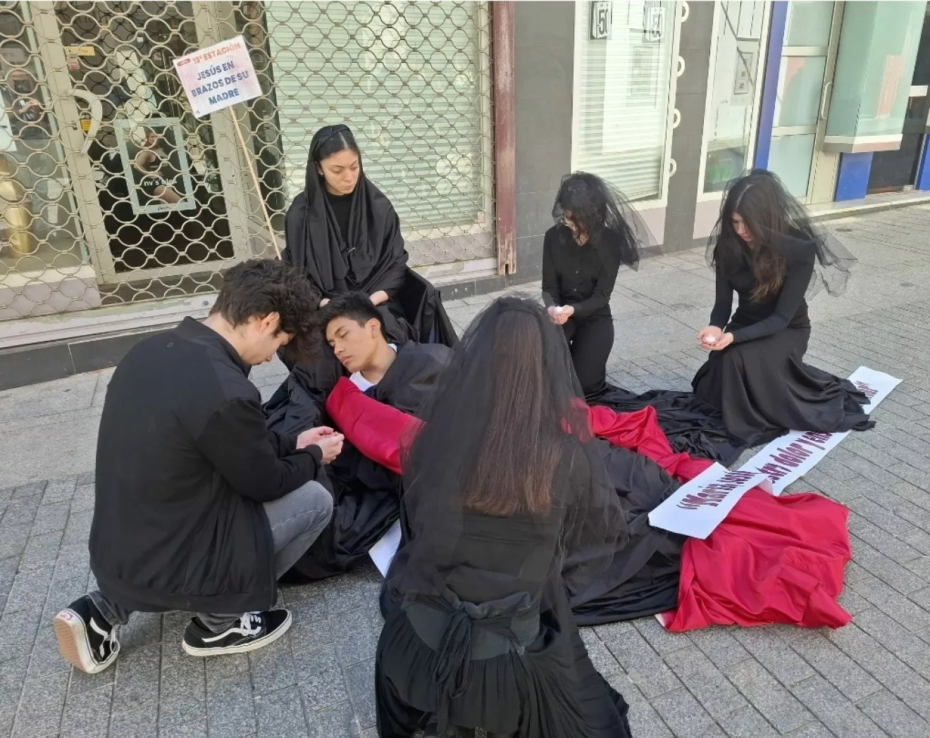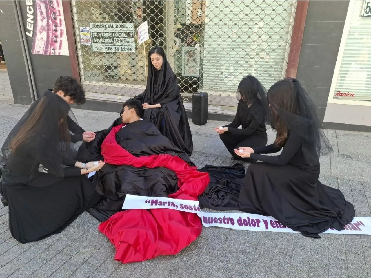 El alcalde, Miguel Ángel Ruiz, acompañado de varios concejales del equipo de gobierno, han tenido oportunidad de asistir al inicio del vía crucis del colegio María Inmaculada que ha recorrido el centro de la ciudad, con diversas escenas de la pasión de Cristo, en los que los escolares han encarnado diversos personajes bíblicos, desde Jesucristo con la cruz, hebreos, soldados romanos, en un recorrido en el no ha faltado el sonido de los tambores y cornetas y la interpretación de “La saeta” con flauta.