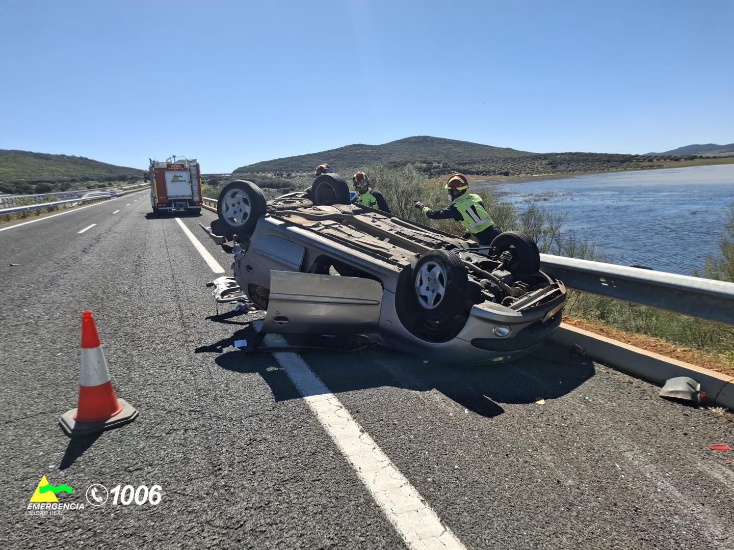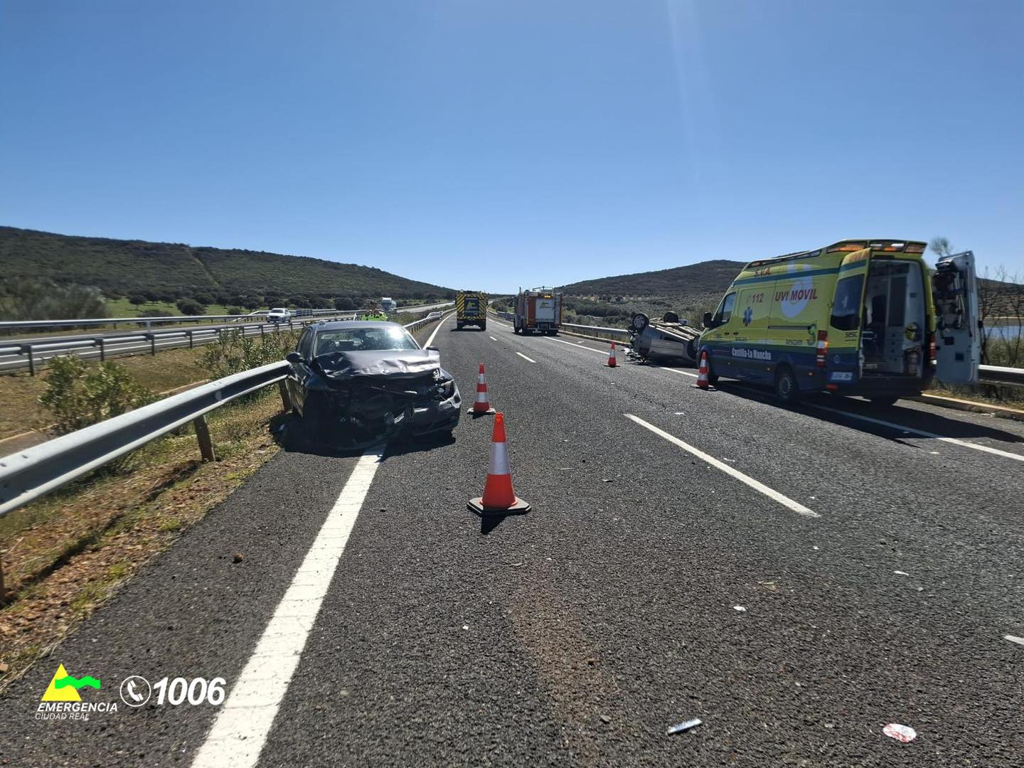 Bomberos del Parque de Ciudad Real han intervenido a primera hora de la tarde de este martes en una colisión por alcance en la A-41, a la altura de Cañada de Calatrava, en la que uno de los turismos ha sufrido un vuelco. El conductor del vehículo volcado fue trasladado al hospital por los servicios sanitarios.