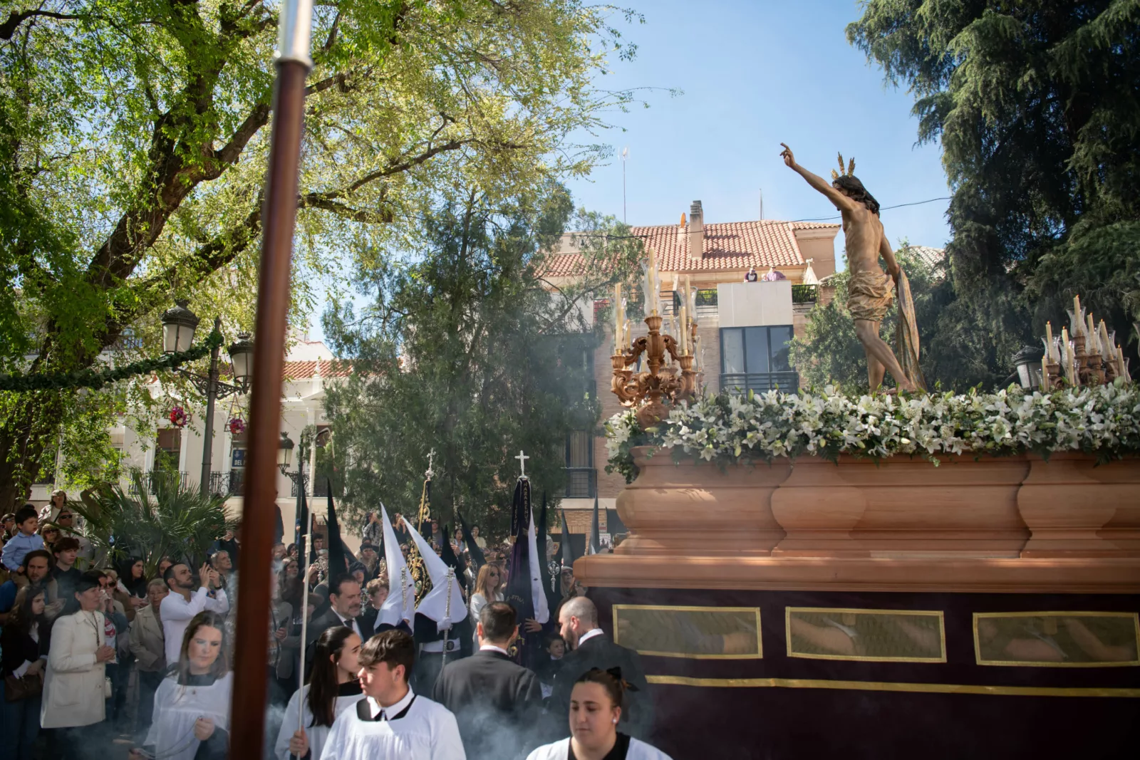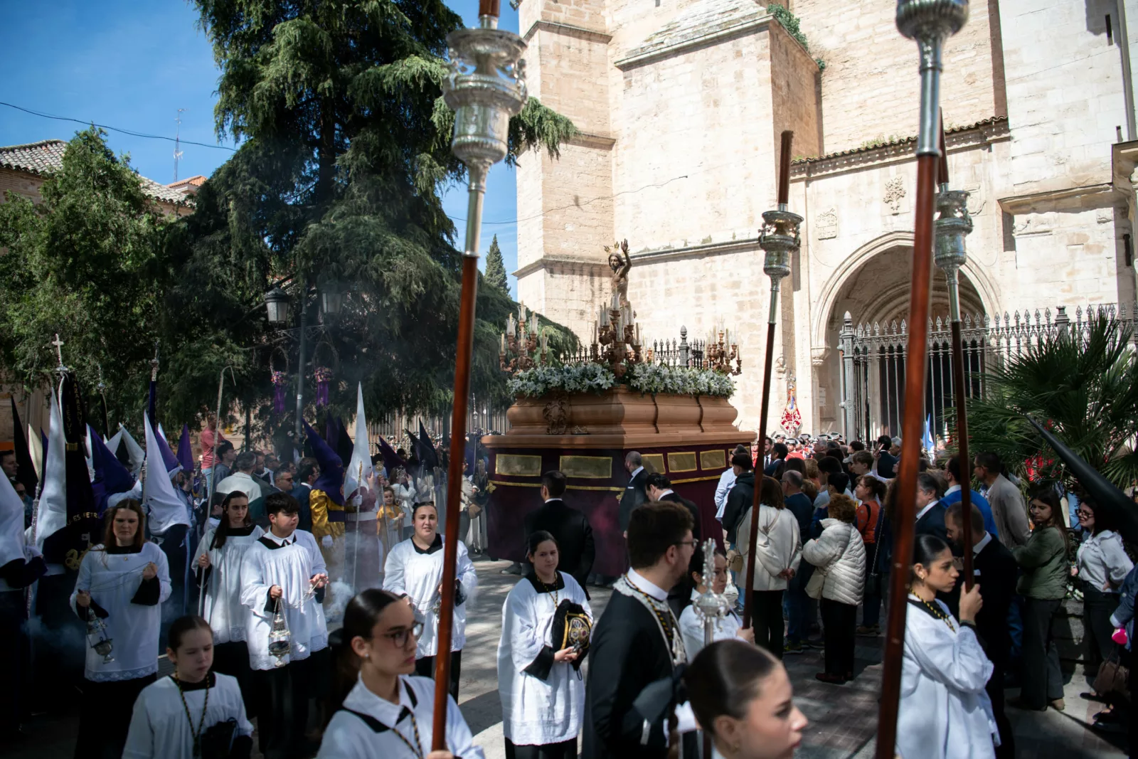 La Catedral de Ciudad Real acogía este espléndido mediodía la salida de la última procesión de la Semana Santa, la del Resucitado. No se trata de un desfile vinculado a una hermandad concreta, sino que está organizado por la Asociación de Cofradías de Ciudad Real, siendo cada año una hermandad la encargada de presidir la procesión. Este 2026, ha correspondido a la Hermandad de las Angustias.