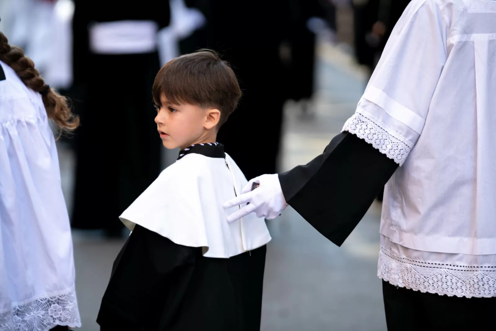 El cortejo lo componen las túnicas de todas las hermandades penitenciales que realizan su salida durante la Semana Santa de Ciudad Real.