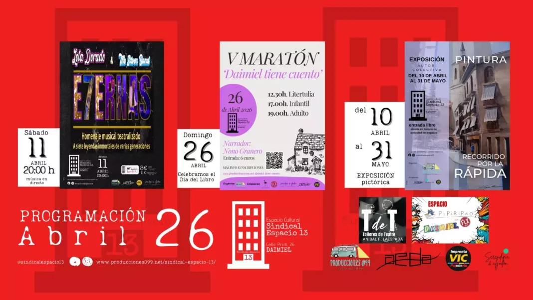 Todos los detalles e inscripciones para participar en la web https://www.producciones099.net/daimiel-tiene-cuento/ y en las redes sociales @sindicalespacio13 (Instagram y Facebook) se irán ampliando los detalles.
