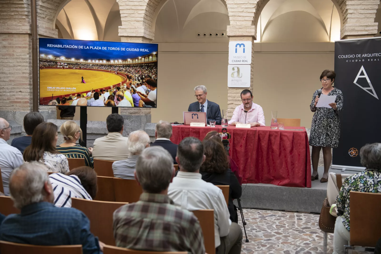 El jefe del servicio municipal de arquitectura del Ayuntamiento de Ciudad Real, Emilio Velado, ha ofrecido una conferencia centrada en el proyecto de rehabilitación integral de la Plaza de Toros de la capital, cuyas obras se concluyeron a finales de 2023 y contaron con una inversión superior a dos millones de euros. El alcalde de Ciudad Real, Francisco Cañizares, y el concejal de Obras, Miguel Hervás, han asistido a la ponencia celebrada en el Museo de la Merced.