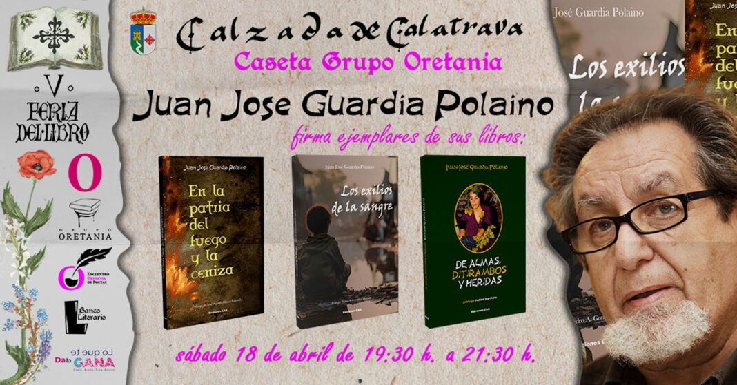 Este sábado 18, a partir de la tarde, la V Feria del Libro de Calzada de Calatrava contará con la presencia excepcional de Juan José Guardia Polaino. El poeta, voz imprescindible de la conciencia social y el existencialismo lírico en nuestra tierra, firmará ejemplares de su prolífica obra, brindando a los lectores la oportunidad de dialogar con un autor cuya palabra, premiada y reconocida, busca siempre rescatar la esencia humana frente a los silencios del mundo.