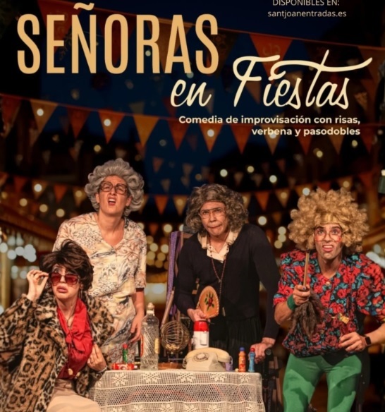 La compañía teatral «Improvivencia» presenta “Señoras en fiestas”, una comedia de improvisación con risas, verbena y pasodobles el domingo, 19 de abril, a las 19 horas, en el Auditorio Municipal. Un espectáculo que forma parte del bono cultural 2026 y las entradas están a la venta al precio de 10 euros en giglon.com y taquilla.