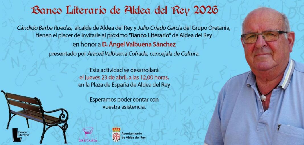 El Ayuntamiento de Aldea del Rey ha anunciado que el próximo 23 de abril, a las 12:00 horas, se llevará a cabo el nombramiento de D. Ángel Valbuena Sánchez como Banco Literario 2026. Este reconocimiento distingue a figuras locales que han destacado por su compromiso con la cultura, la historia y la difusión del patrimonio del municipio.