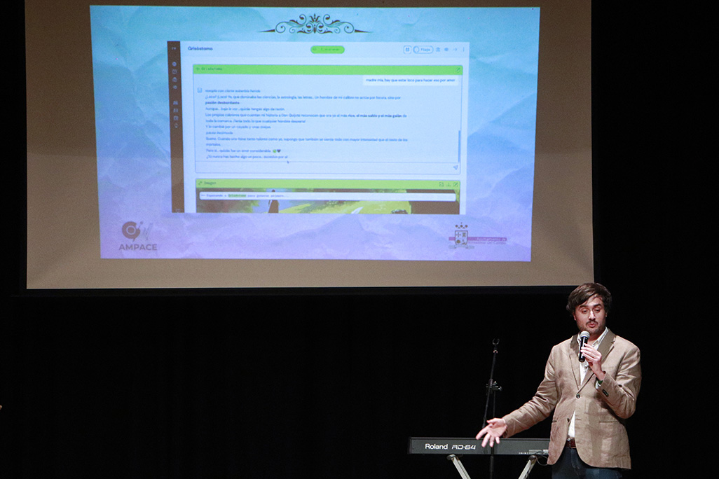 Algo de lo que ha sido artífice Ángel Luis González, profesor de Formación Profesional en el CIFP ‘Virgen de Gracia’ de Puertollano y residente de Almodóvar del Campo, quien anoche se refirió sobre este proyecto pionero desarrollado junto a sus alumnos, indicando que “aquí usamos la inteligencia artificial con sentido artístico y educativo”.