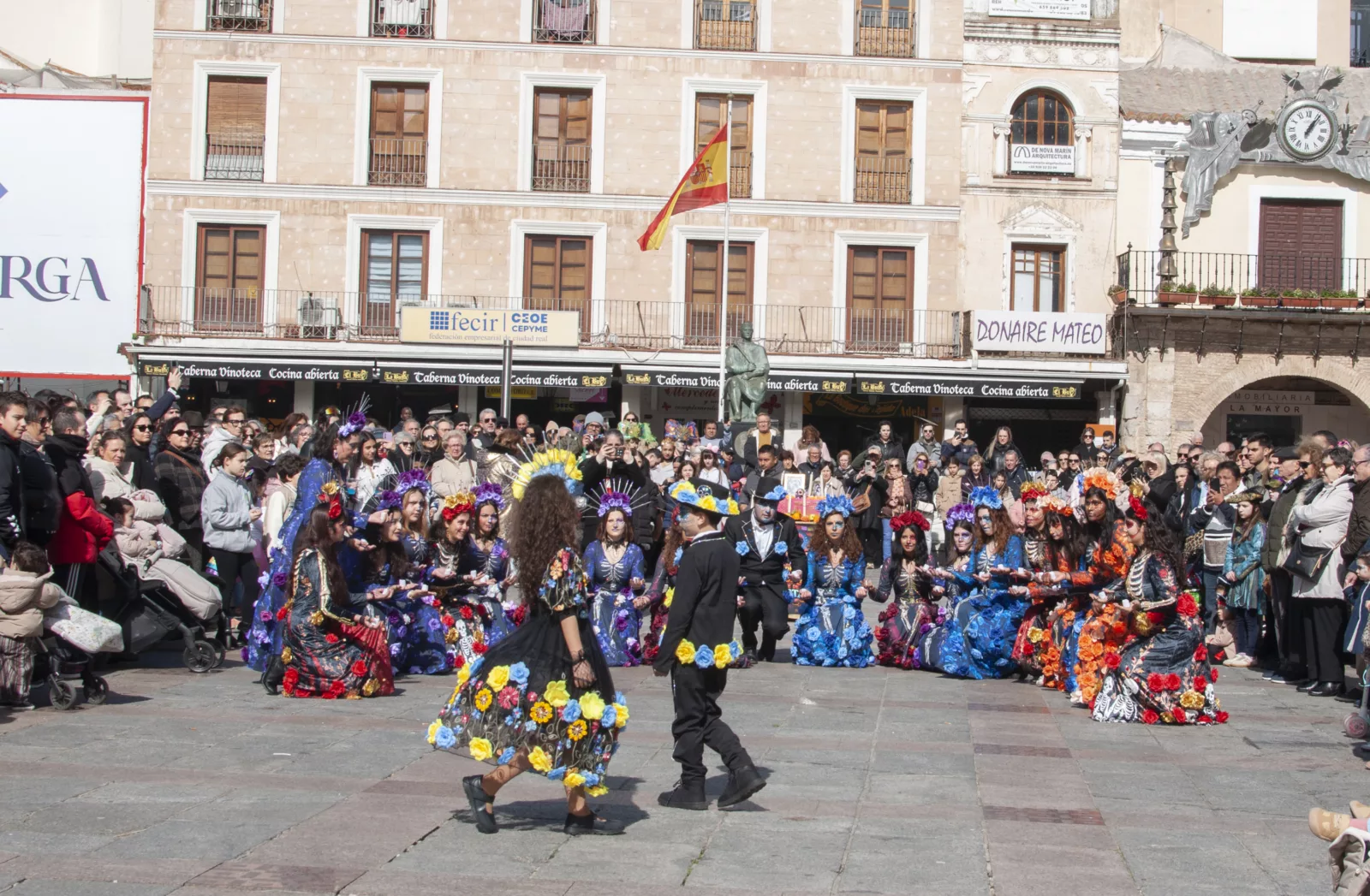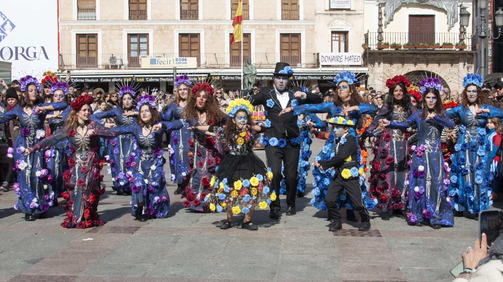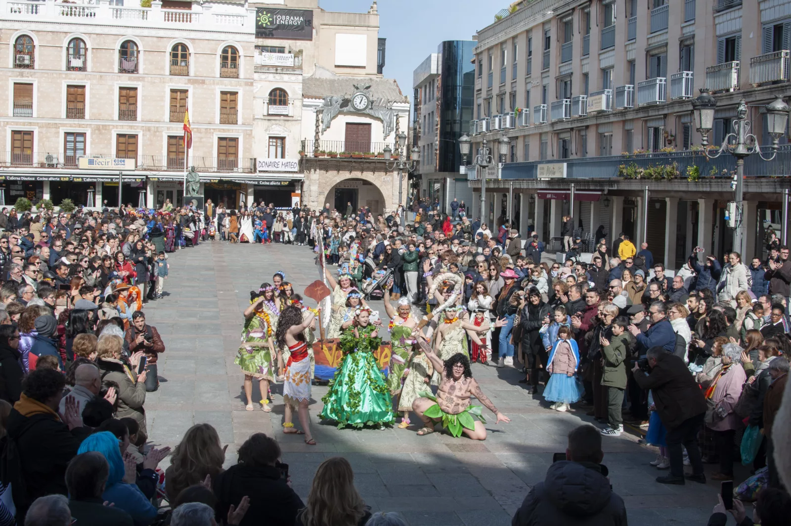El Ayuntamiento de Ciudad Real ha celebrado este Domingo de Carnaval el tradicional Concurso Local de Comparsas en una Plaza Mayor repleta de público, disfraces y entusiasmo. La peña El Dinosaurio se alzó con el primer premio, dotado con 600 euros y trofeo, gracias a su propuesta ‘Donde la muerte se viste de fiesta’, una puesta en escena que cautivó tanto al jurado como a los asistentes por su originalidad y fuerza visual.