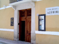 Una vez en la acera de los números pares, en el número 6, donde estaba la casa de sus padres, vimos el ocre de fachada y la lápida que dice Casa-Museo, a mi izquierda si miro a la puerta de frente está el símbolo de la CAM Cultura (el triangulo y el cuadrado inscrito en un círculo), que la adquirió y rehabilitó respetando la fechada, la buhardilla, despachos del padre, salones, y que se inauguró el 10 de mayo de 1969. La calle es estrecha, tanto que no se puede aparcar, solo es transitable, y el silencio fluye de aquí para allá, el incorrupto e impenetrable balcón de donde cuelga una especie de auca o cartel que anuncia la exposición Cervantes y Azorín. No acuden las voces de los murmullos de los vecinos, el maullar de los gatos ni el pasar de los carros porque ya no hay carros sino carritos de la compra donde el cartero lleva su mercancía de cartas sin uniforme ni gorra de plato.