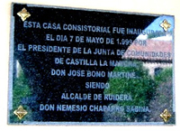 Los álamos que en la primavera sueltan su pelusa blanca nos anuncian el pueblo de Ruidera situado en el kilómetro 409, a la derecha una gasolinera o estación de servicios Cinco Hermanos y más adelante el nuevo edificio de la Casa Consistorial que fue inaugurado 7 de mayo de 1999 por el Presidente de la junta de Comunidades de Castilla-La Mancha José Bono Martínez, siendo alcalde Nemesio Chaparro Salinas. Frente al ayuntamiento se halla la iglesia con su torre campanario, paños laterales sostenidos por contrafuertes. A Ruidera llegó usted, señor Azorín, en el capítulo IX y X de su ya referido libro La Ruta de Don Quijote, un día del mes de marzo de 1905, escribe: