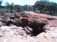 De Ruidera a Argamasilla hay exactamente 31 kilómetros, nos lo indica una señal de situación en la esquina de la bifurcación que se abre a nuestra derecha, con una serie de curvas hacia la laguna Cenagosa, donde hay un viejo molino de agua abandonado, casi como si pareciera los Batanes, narrado en el capítulo XX de la I parte. Es hora de buscar y preguntar por Azorín. La plaza de Ruidera tienen una fuente en el centro y se llama Plaza de Cervantes, hay una tienda de ultramarinos, una de venta de quesos Manchegos y dos bares, en la otra parte, cruzando la carretera una pizzería y un bar de desayunos y bocadillos, la tienda de recuerdos, también está la panadería con un amplio arcén que sirve de aparcamiento. Veo a un joven con gafas y dos bastones, se tambalea.