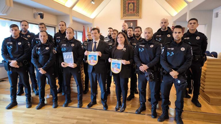 Foto 8: De pie, Yolanda Martínez López, con Joaquín Pérez Azaústre, Teresa Marquina y Basilio Rodríguez Cañada